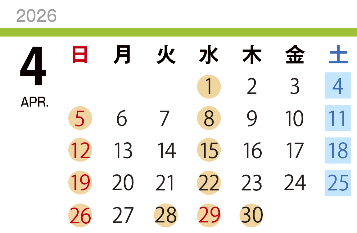 2ヶ月先までの診療カレンダーを掲載しています(予定としてお考えください)。変更が生じた場合には更新します。なお、緊急な医療対応等で、急な予定変更がある場合もあります。2026年3月、4月、5月は都合により変則的なスケジュールになっている日があります。