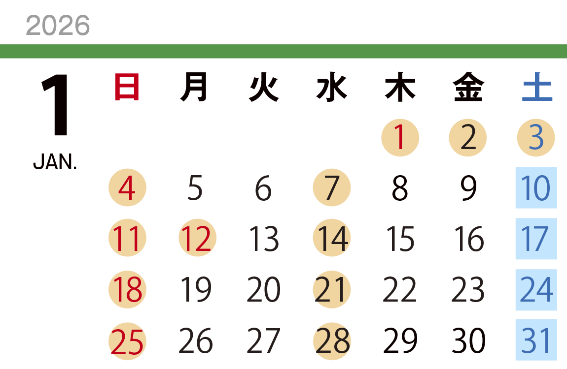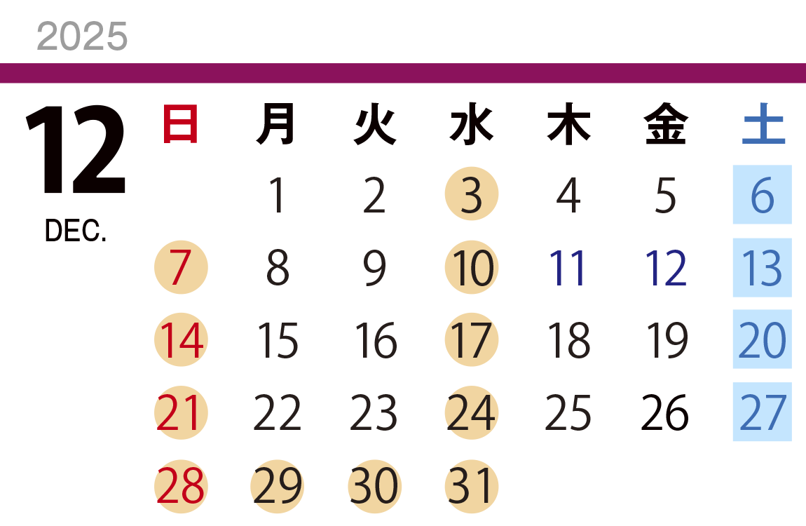 2ヶ月先までの診療カレンダーを掲載しています(予定としてお考えください)。変更が生じた場合には更新します。なお、緊急な医療対応等で、急な予定変更がある場合もあります。2025年11月、12月、2025年1月は都合により変則的なスケジュールになっている日があります。